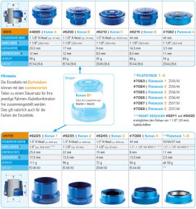上下内外各サイズのヘッドセットを自由に組み合わせ。