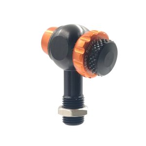 EVOは狭い箇所でもバルブを扱いやすい90度のタイプ。総アルミ製でカラーも鮮やか。